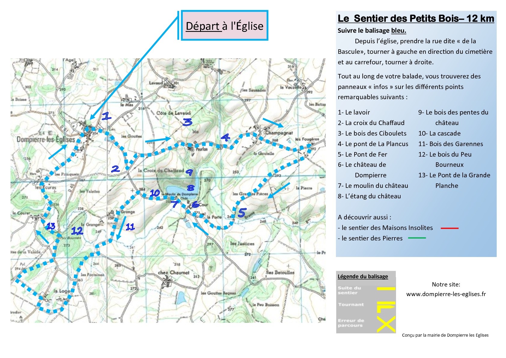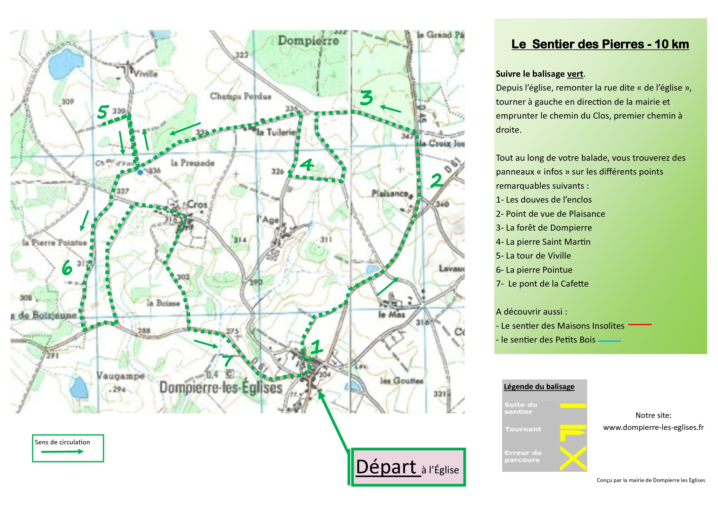La commune de Dompierre-Les-Eglises vous propose plusieurs balades/randonnées ainsi que des espaces de verdure pour prendre l'air et vous promener.